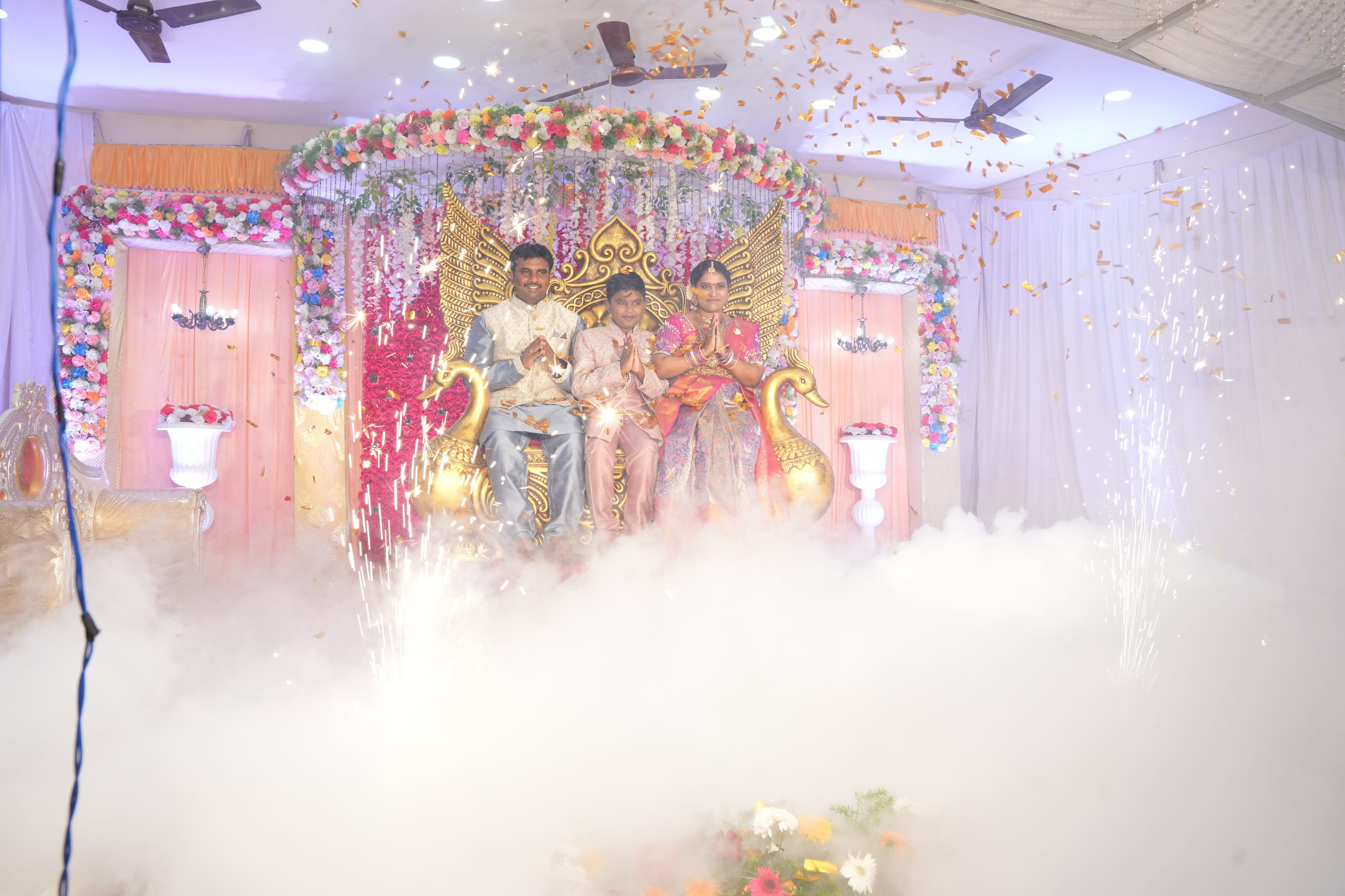 Decor & Food: Traditional decorations, South Indian vegetarian feast.